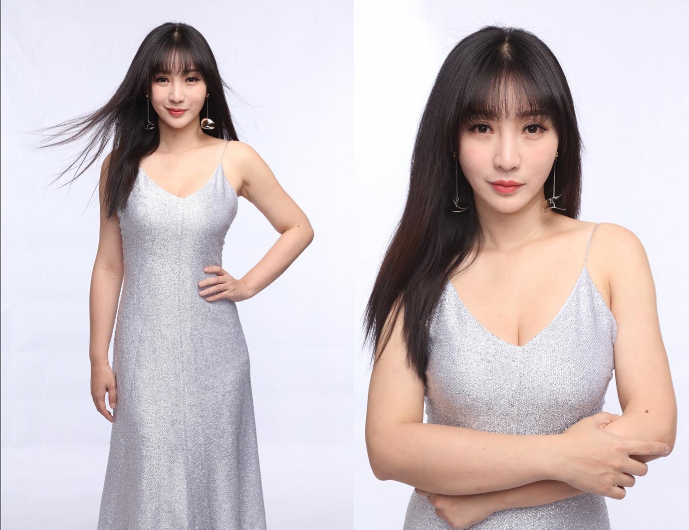 修图练习素材 JPG 格式压缩原片 柳岩早期棚拍亮银色长裙