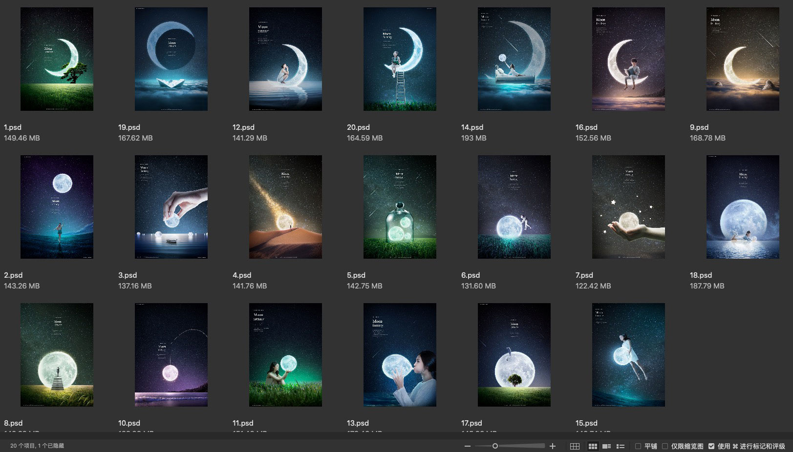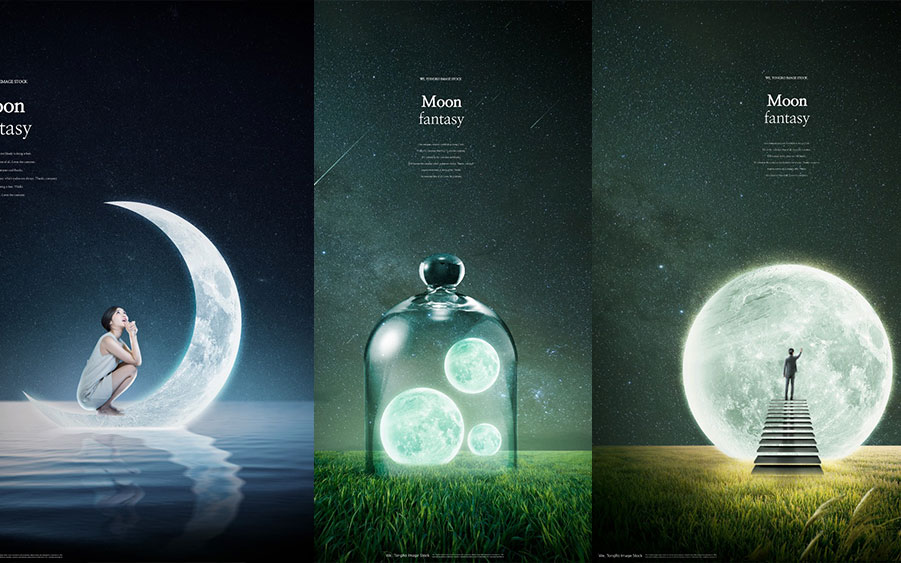 后期合成素材 一组跟月亮相关联的合成设计 PSD 分层文件